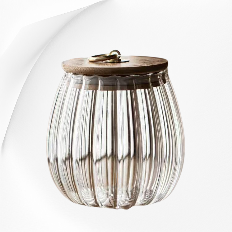 وعاء زجاجي منزلي مقاوم للحرارة وشفاف بخطوط عمودية من البورسليكات العالي ومحكم الإغلاق