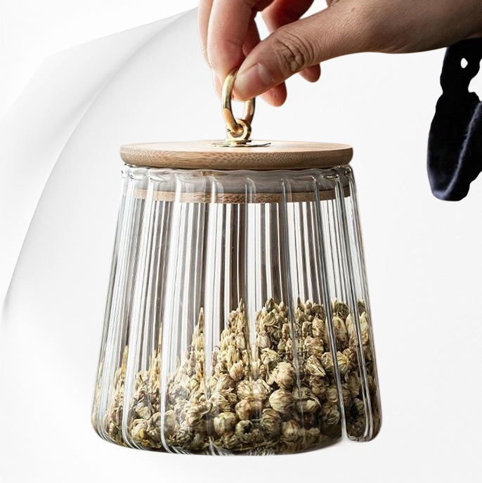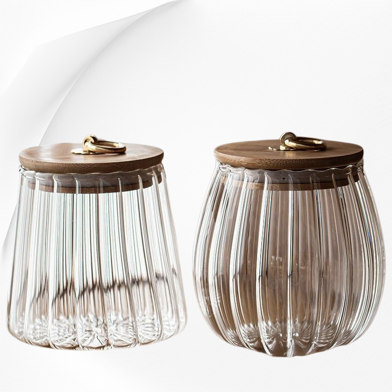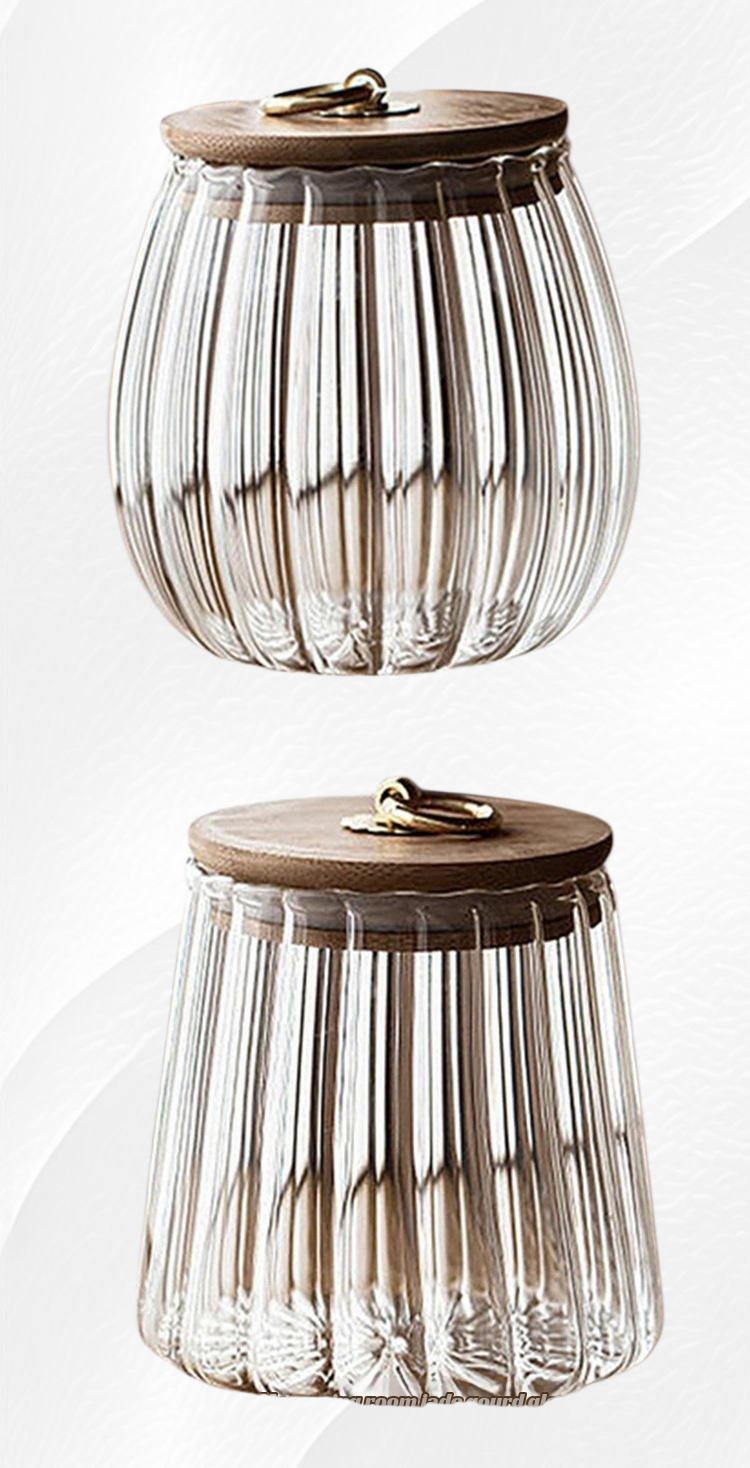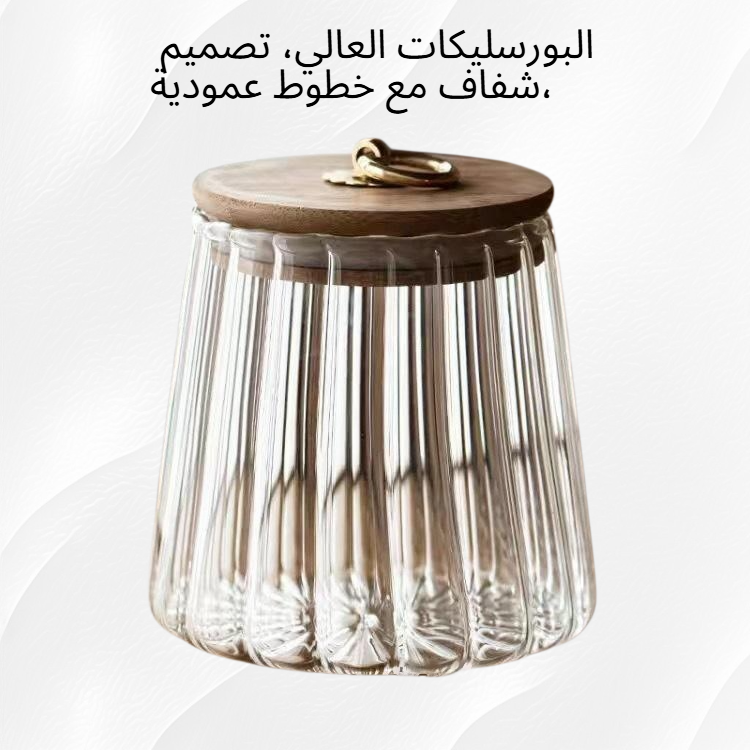 وعاء زجاجي منزلي مقاوم للحرارة وشفاف بخطوط عمودية من البورسليكات العالي ومحكم الإغلاق